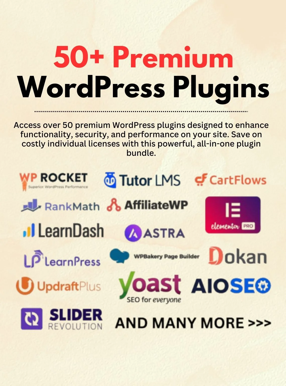 - 50+ Premium WordPress plugins